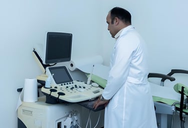 فحص سونار دقيق للبطن والحوض لتقييم الرحم والمبايض، وتشخيص الحالات النسائية المختلفة بدقة وبدون تدخل جراحي